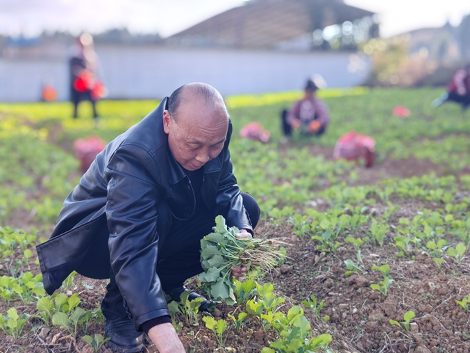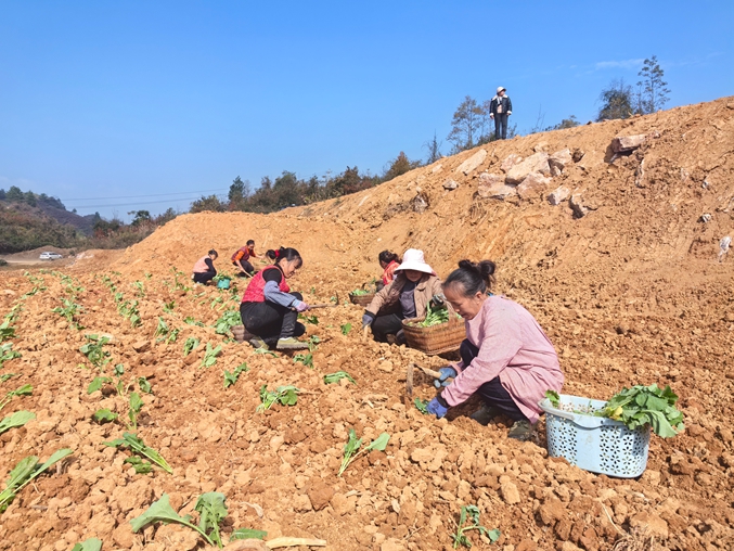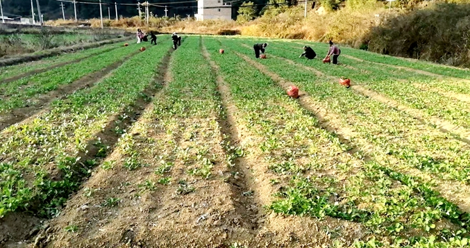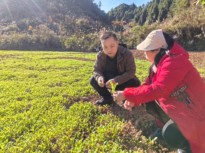 在羊满哨村油菜种植示范点,连片的农田里随处可见农户忙碌的身影,翻耕平整的土地上,一行行嫩绿的油菜苗被精心栽种。